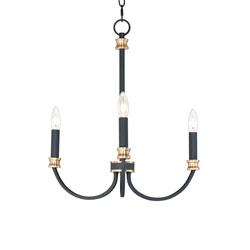 A lovely candelabra style collection with rich accents. This seemingly simple chandelier highlights classically curving accents in a stately combination of Black with Antique Brass accents or chic Weathered White with Gold Leaf accents. Taking a streamlined approach to the archetypal chandelier form, this series updates uses squared tubing to subtly modernize an approachable design with exposed candelabra lighting.