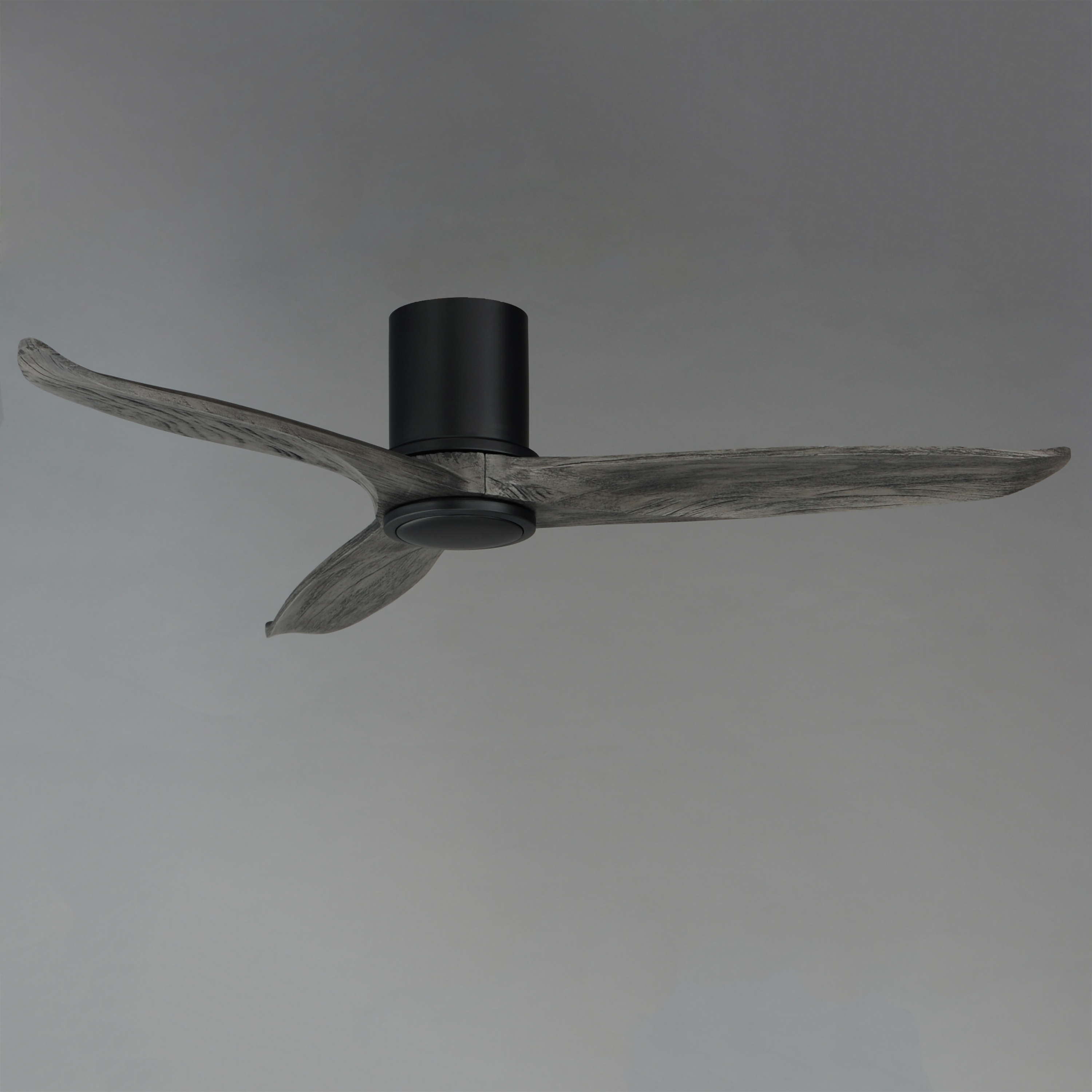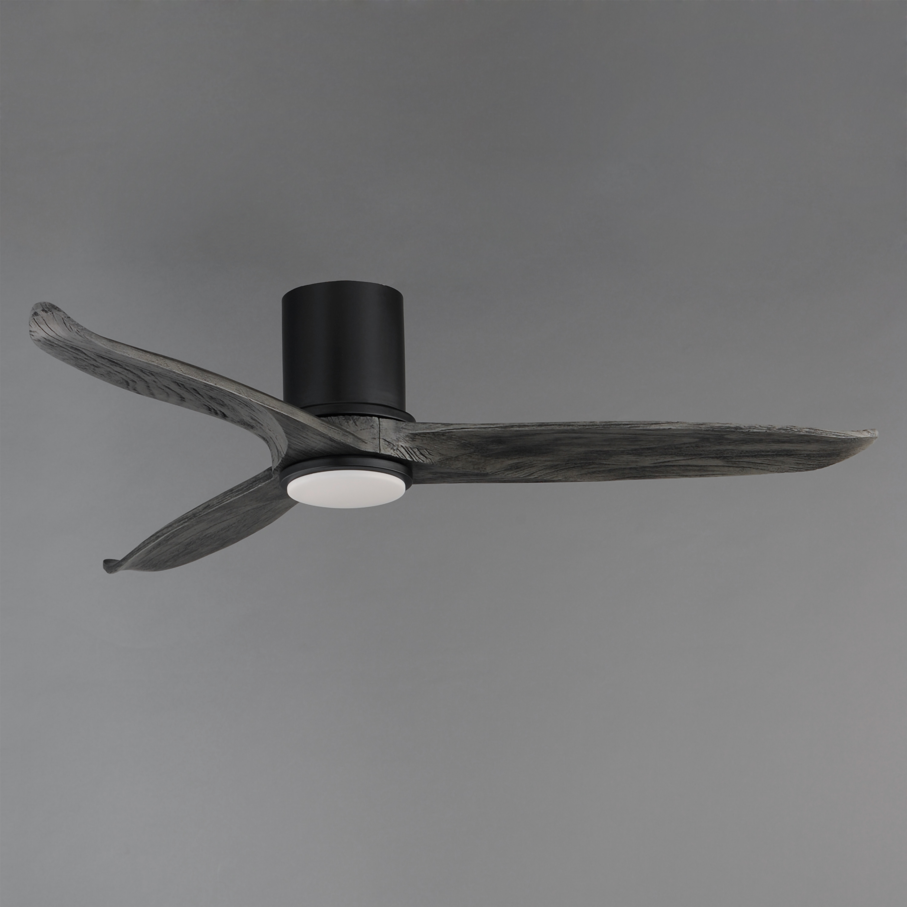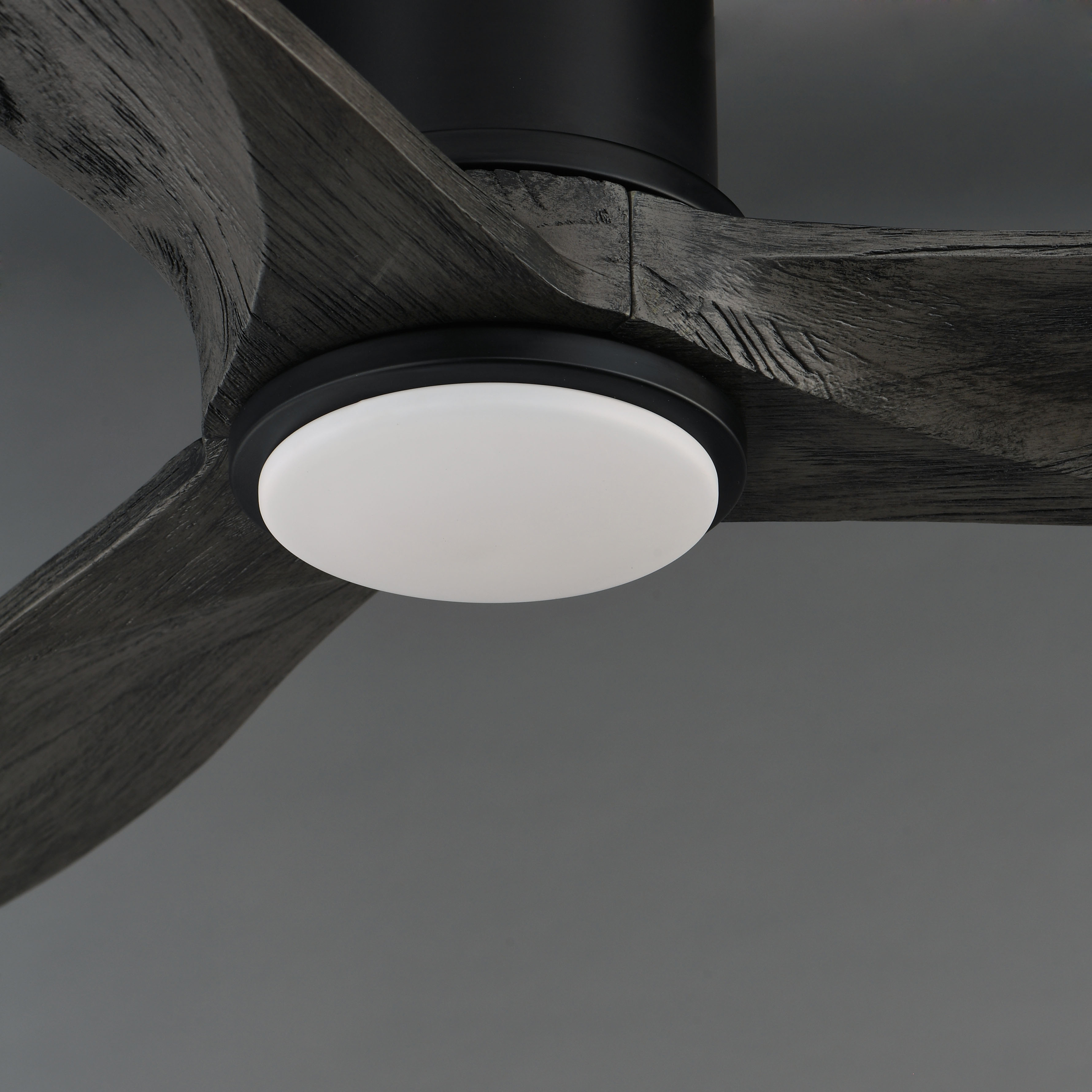 Solid Wood blades curve as they rotate around a center housing with LED light kit included. An additional cover plate is included if the light kit is not used. Select from stylish finish combinations including Natural Aged Brass with White Wood, Satin Nickel with Greywood, Black with Walnut wood, or Charcoal Bronze with Distressed Wood.