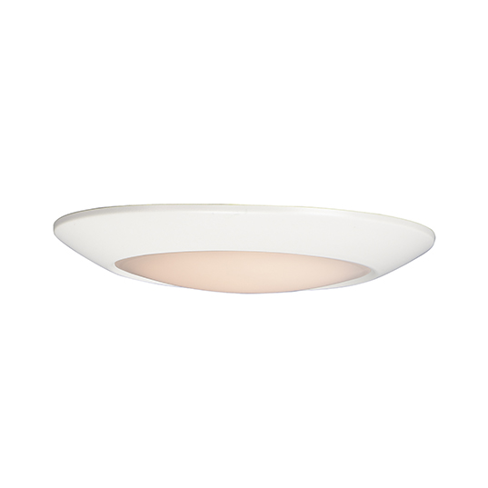 This very compact LED flush mount directly installs on any 4" junction box and gives the look of a recessed trim. Constructed of Die Cast Aluminum, the Diverse luminaire is dimmable and approved for wet or damp locations so it can be used in virtually any ceiling application, including showers.