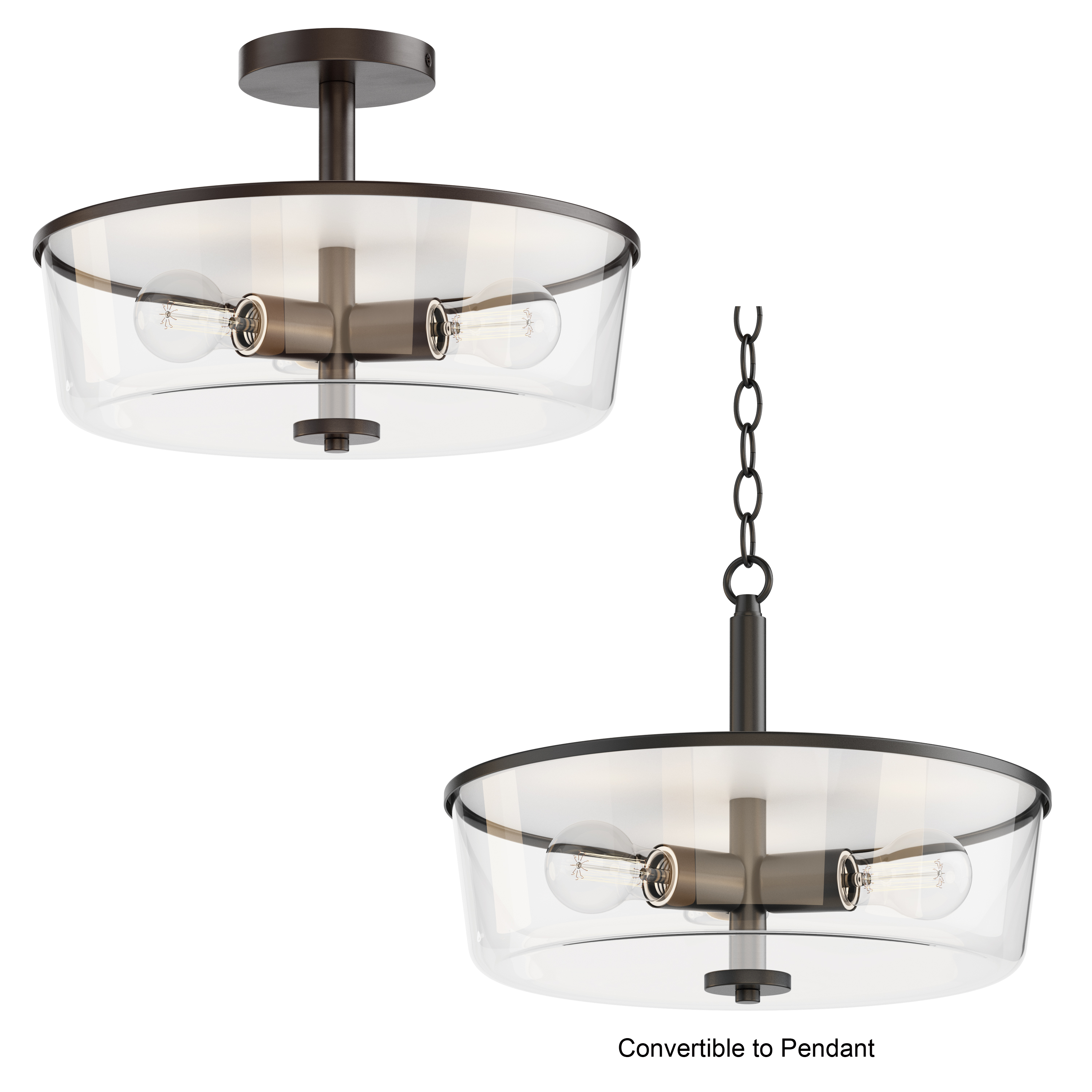 Fuller 3-Light Semi Flush/Pendant Convertible