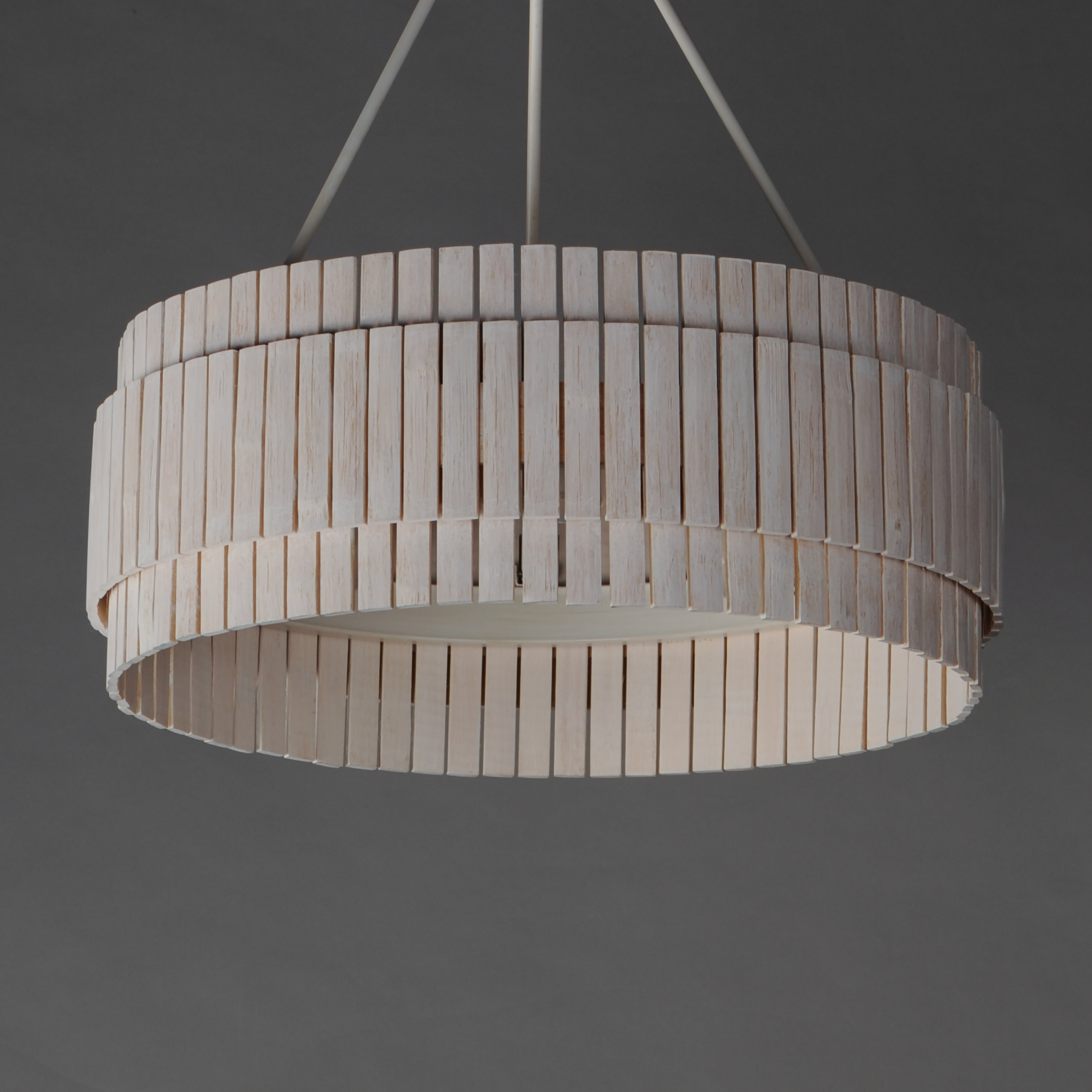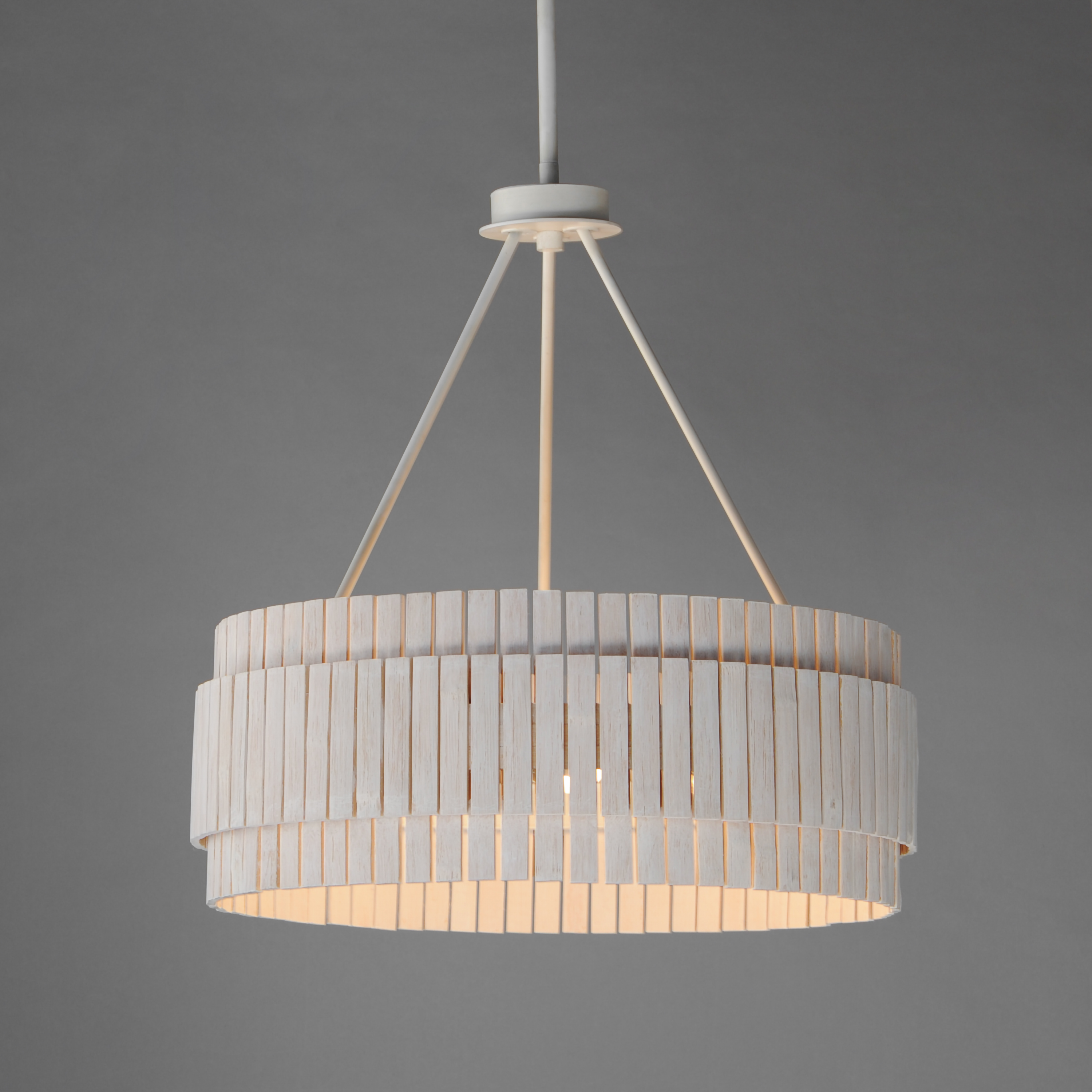 Crafted from sustainable bamboo, this lighting collection elevates the classic drum shade design with handcrafted, natural materials. The bamboo slats are thoughtfully spaced to allow light to filter through, creating a warm and inviting ambiance. Finished in a whitewashed, hand-brushed finish, both the pendant and coordinating sconce feature neutral tones that seamlessly complement a variety of interior styles.