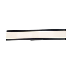 Dual Black aluminum channels support a Frost acrylic diffuser that projects light into the room when illuminated. Available in 4 lengths, this collection can be installed horizontal above the mirror or vertical on each side.