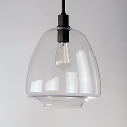 Pendants of Clear glass in unique elongated and undulating shapes with various sizes. This series pairs well with popular finishes in hardware and plumbing, giving you the flexibility to take chances with designer statement pieces. The metalwork is available in your choice of Matte Black, Satin Brass, or Satin Nickel. A coordinating wall sconce pairs well with the collection. Use filament bulbs to complete the look.