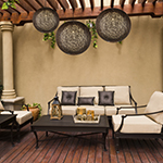 Spherical dual shades constructed of woven string in two tone finish combinations, Natural with White inner and Chocolate with White inner. Shades are treated for weather resistance and are U.L. approved for damp location which make them perfect for outdoor living spaces.